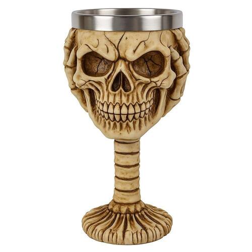 Cálice Taça Decorativa Caveira Não Ouço Vinho Chopp Cerveja 180ML Colecionável Interior em Aço Inox Marfim Negócio