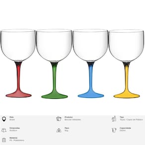 -Transparente com Hastes Coloridas: O design transparente da taça com hastes coloridas adiciona um toque moderno e atraente, tornando a apresentação do seu gin ainda mais convidativa.