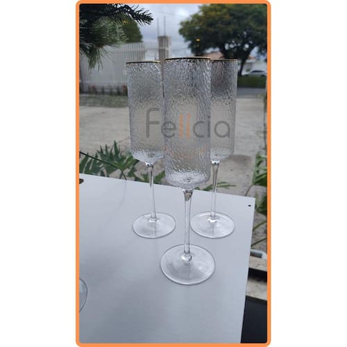 Taça para Champanhe de Cristal Martelado com Fio de Ouro Petra 300ml - Lyor