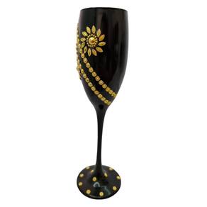 Taça Vidro Pomba Gira Dama da Noite Preto e Dourado 190 ml