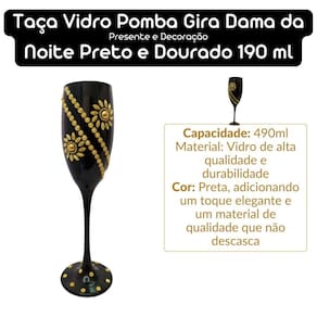 Essa taça é uma excelente opção para quem deseja unir espiritualidade e estilo, trazendo consigo a proteção e a força de Pomba Gira Dama da Noite Preto e dourado confere um toque sofisticado, tornando-a perfeita para quem busca uma conexão espiritual intensa ou uma peça diferenciada de decoração.