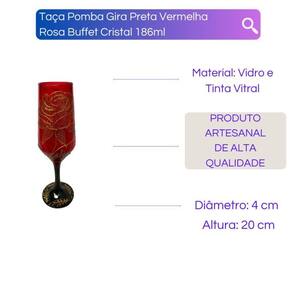 Taça Pomba Gira Preta Vermelha Rosa Buffet Cristal 186ml Taça Pomba Gira Preta Vermelha Rosa Buffet Cristal 186 ml A taça Pomba Gira Preta Vermelha Rosa Buffet da Bialluz, é confeccionada em vidro, material que traz elegância a peça sem contar na alta qualidade que possui. Com detalhes luxuosos que brilham e cores vivas que deixam a taça ainda mais maravilhosa. Nossataça é muito especial e com certeza trará ótimas energias em sua vida. As Taças da Bialluz possuem proteção impermeabilizada garantindo mais durabilidade e evitando danos a pintura. Enviamos a sua taça em até 24 horas após a confirmação de pagamento Dimensões aproximadas: Altura:20 cm Diametro: 4 cm Capacidade: 186 ml Cor: Preta, Vermelha Caso tenha alguma dúvida nos mande mensagem que respondemos rapidinho para te ajudar da melhor forma possível Marca: Meta Atacado