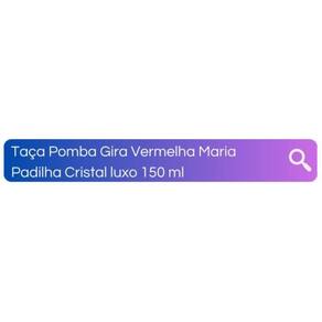 Taça Pomba Gira Vermelha Maria Padilha Cristal luxo 150 ml Produzida em vidro de alta qualidade. Com um design elegante e único, a taça possui o detalhe da Maria Padilha em um vermelho vibrante, conferindo ainda mais personalidade e estilo à peça. A tonalidade do vermelho simboliza a calma, serenidade e tranquilidade, tornando-a ideal para celebrações que necessitam dessas características. Se você busca uma taça de alta qualidade e beleza ímpar para celebrar momentos únicos e especiais, a Taça Maria Padilha 150 ml - Vidro é a escolha perfeita para você Com certeza, essa taça irá impressionar seus convidados e tornar sua celebração ainda mais especial e inesquecível. Material: Vidro Diâmetro: 22,5 cm x 5 cm Capacidade: 150 ml Mililitros Peso aproximado da peça: 165 g O acabamento é impermeabilizado para dar mais durabilidade e para que não comprometa o uso e solte a pintura, e também oferece um bom acabamento com brilho. Ao lavar evitar fricção excessiva para não comprometer o brilho da peça Imagens meramente ilustrativas Embalagem de Envio: Respostas das dúvidas mais frequentes na ordem: R1: Já realizamos milhares de entregas em todo o Brasil, somos especialistas no que fazemos. R2: Assim que seu pedido for despachado, esta plataforma envia para você o código de rastreamento. R3: Enviamos o produto 100% inspecionado e conferido em nosso checkout e são embalados em embalagem de papelão e plástico bolha. R5: Iremos despachar o seu produto o mais rápido possível, assim que for confirmado pela plataforma, enviamos em até 24h. R6: Nós queremos a sua satisfação, qualquer problema iremos te auxiliar em nossos canais de comunicações. Marca: Lua Mística - 100% autêntico - Loja Oficial