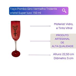 Taça Pomba Gira Vermelha Tridente cristal Super luxo 150 ml Produzida em vidro de alta qualidade. Com um design elegante e único, a taça possui o detalhe da Pomba Gira em um vermelho vibrante, conferindo ainda mais personalidade e estilo à peça. A tonalidade do vermelho simboliza a calma, serenidade e tranquilidade, tornando-a ideal para celebrações que necessitam dessas características.Se você busca uma taça de alta qualidade e beleza ímpar para celebrar momentos únicos e especiais, a Taça Pomba Gira Tridente 150 ml - Vidro é a escolha perfeita para você Com certeza, essa taça irá impressionar seus convidados e tornar sua celebração ainda mais especial e inesquecível.Material: VidroDiâmetro: 22,5 cm x 5 cmCapacidade: 150 ml Mililitros Peso aproximado da peça: 171 g O acabamento é impermeabilizado para dar mais durabilidade e para que não comprometa o uso e solte a pintura, e também oferece um bom acabamento com brilho. Ao lavar evitar fricção excessiva para não comprometer o brilho da peçaImagens meramente ilustrativasEmbalagem de Envio:Respostas das dúvidas mais frequentes na ordem:R1: Já realizamos milhares de entregas em todo o Brasil, somos especialistas no que fazemos.R2: Assim que seu pedido for despachado, esta plataforma envia para você o código de rastreamento.R3: Enviamos o produto 100% inspecionado e conferido em nosso checkout e são embalados em embalagem de papelão e plástico bolha.R5: Iremos despachar o seu produto o mais rápido possível, assim que for confirmado pela plataforma, enviamos em até 24h.R6: Nós queremos a sua satisfação, qualquer problema iremos te auxiliar em nossos canais de comunicações. Marca: Lua Mística - 100% Original - Loja Oficial