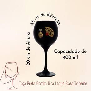 Taça Preta Pomba Gira Leque Rosa Trid Pr 400ml 20cm Celebra Celebre a energia da Pomba Gira com esta deslumbrante Taça Preta adornada com uma linda rosa, leque e tridente cruzado. Com capacidade para 400ml e medindo 20cm de altura, esta taça é uma adição impressionante para seus rituais e celebrações espirituais. Feita com cuidado e atenção aos detalhes, esta taça incorpora símbolos significativos da Pomba Gira, incluindo uma rosa que representa sua beleza e paixão, um leque simbolizando sua influência e poder, e um tridente cruzado representando sua conexão com os domínios espirituais. Material: Vidro Diâmetro: 6,5 cm Tamanho: 20 cm de altura Capacidade: 400 ml Mililitros Ao lavar evitar fricção excessiva para não comprometer o brilho da peça - O acabamento é impermeabilizado para dar mais durabilidade e não comprometer a pintura. Também oferece um bom acabamento com brilho. Imagens meramente ilustrativas Tire todas as suas dúvidas antes de concluir a compra. Iremos responder o mais breve possível. Embalagem de Envio: Caixa de papelão ondulado, plástico bolha. Respostas das dúvidas mais frequentes na ordem: R1: Já realizamos milhares de entregas em todo o Brasil, somos especialistas no que fazemos. R2: Assim que seu pedido for despachado, esta plataforma envia para você o código de rastreamento. R3: Enviamos o produto 100% inspecionado e conferido em nosso checkout e são embalados em embalagem de papelão e plástico bolha. R4: O tempo de entrega irá depender totalmente do seu CEP, todos os nossos produtos saem de Capital. R5: Iremos despachar o seu produto o mais rápido possível, assim que for confirmado pela plataforma, enviamos em até 24h. R6: Nós queremos a sua satisfação, qualquer problema iremos te auxiliar em nossos canais de comunicações. Marca: Não Informado