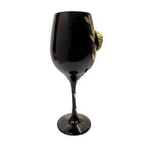 Taça Preta Pomba Gira Rosa Dourada 490 ml em Vidro Nadir Barone