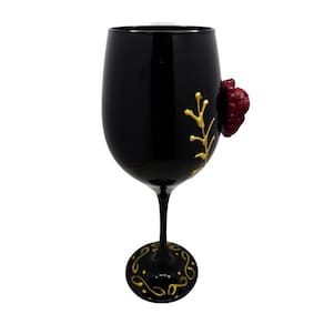 Taça Preta Pomba Gira Rosa Vermelha e Dourado 490 ml em Vidro Nadir Barone Pomba Gira Maria Padilha Cigana