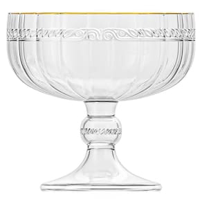A taça para sobremesa da Lyor é fabricada em cristal, na cor tansparente com borda dourada, de grossa espessura para garantir a durabilidade e qualidade do produto. As taças possuem 200mL de capacidade, 9,2cm de altura e 10cm de diâmetro.