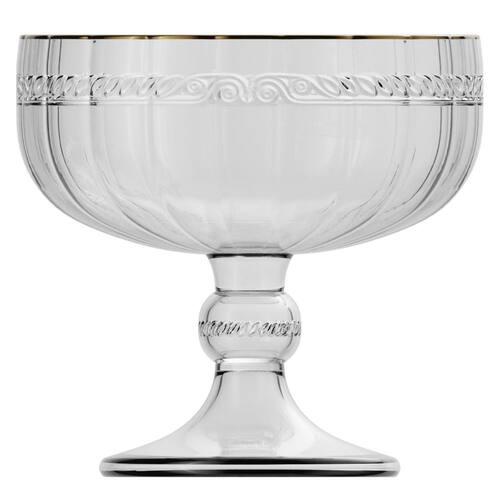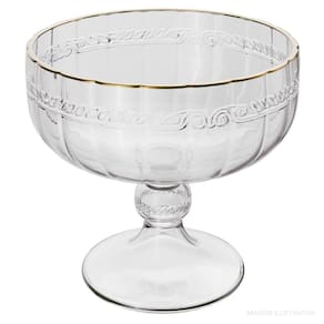 Com seu design requintado e detalhes em fio de ouro imperial, esta taça é uma peça de destaque que adiciona um toque de luxo à sua mesa de sobremesa.