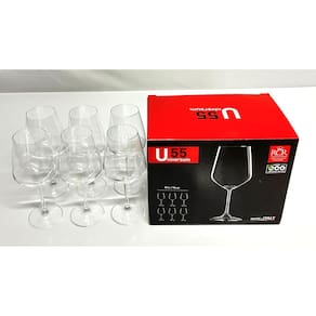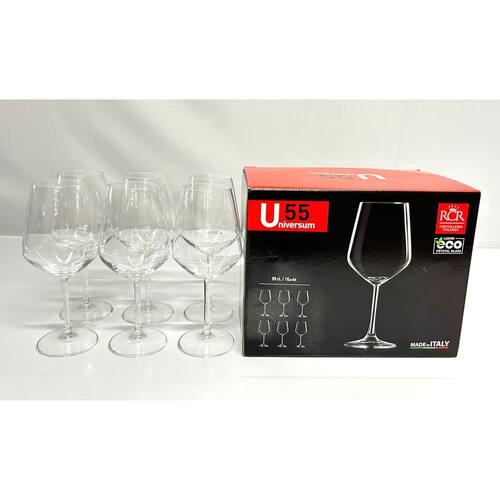 Importada da Itália Fabricante RCR Modelo U55 Altura total 22cm Diâmetro da Boca 6,3cm Diâmetro da Base 7,8cm Largura maior do bojo 9,5cm Peso conj 6 unid 1,120kg