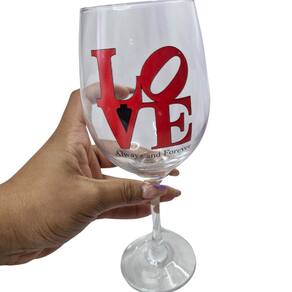 Taça Vidro Frase Love Namorados Casal Presente Taça de Vidro Frase Love