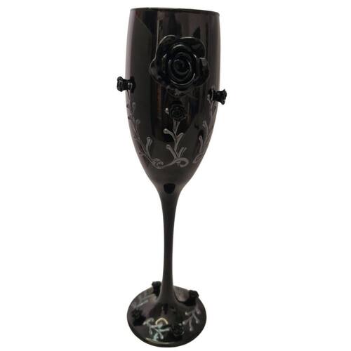 Taça Vidro Preta Pomba Gira Rosas -196ml