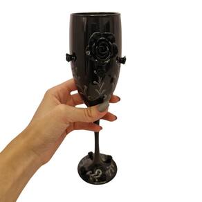 Taça Vidro Preta Pomba Gira Rosas -196ml