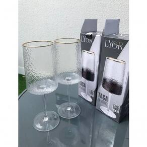 Taça Vinho De Cristal Martelado Petra Fio De Ouro 500ml Lyor