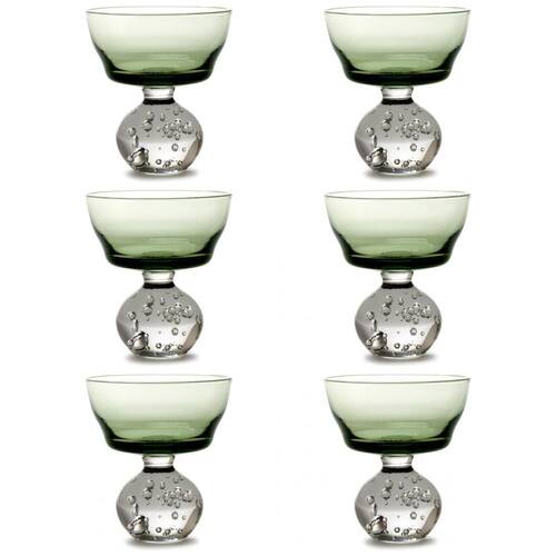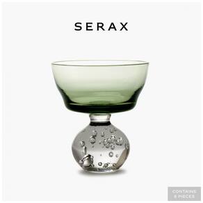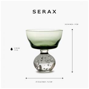 A taça de champanhe Serax Eternal Snow, desenhada por Bela Silva, é uma peça única que combina a textura suave da neve eterna com um formato soprado em vidro atípico. Pequenas bolhas brincalhonas são visíveis na base da taça, criando um visual encantador. Estas taças verdes são perfeitas para servir champanhe, vinho ou mesmo martinis em qualquer evento. Bela Silva, uma artista portuguesa internacionalmente reconhecida, traz sua criatividade para essas peças exclusivas. A marca Serax, sediada na Bélgica, destaca-se pela qualidade e design contemporâneo, colaborando com renomados designers para elevar o ambiente do dia a dia. O conjunto inclui 6 taças de champanhe verde Eternal Snow por Bela Silva.