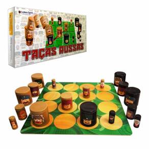 O objetivo do jogo é alinhar 4 cilíndros da mesma cor podendo esconder suas próprias peças ... Ou as do adversário Taças Russas é um jogo abstrato onde cada jogador possui 3 conjuntos de peças, cada um deles contendo 4 cilindros de tamanhos escalonados que encaixam-se semelhante às famosas Matrioskas russas . Seu objetivo é colocar no tabuleiro quatro de suas peças em uma linha horizontal, vertical ou diagonal. Suas peças começam fora do tabuleiro 3 conjuntos, de onde só a peça mais externa de cada pode ser usada e, no seu turno, você pode colocar uma nova peça no tabuleiro ou mover uma existente para qualquer outro local. Importante: uma peça maior sempre pode ser usada para cobrir qualquer outra menor - sua ou de seu oponente. Neste sentido ele também é um jogo de memória, afinal você precisa lembrar qual a cor que suas peças estão cobrindo antes de mover uma delas, ou corre o risco de dar a vitória ao seu adversário em uma jogada sua...
