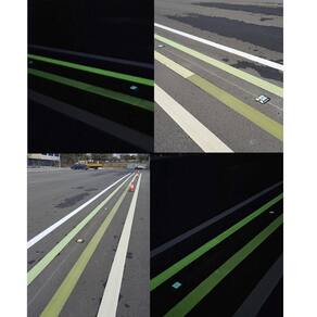 Tachadura de estrada autoluminescente e refletora, que brilha no escuro e reflete a luz, guiando pedestres e alertando.