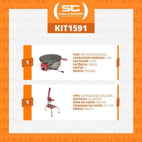 Tacho Fritador de Mesa Elétrico 14L Óleo PR-14E 220V Progás e Cortador de Legumes