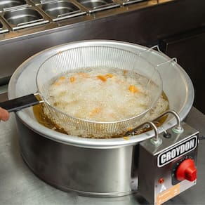 Tacho Fritador Elétrico 7 Litros TFSL Croydon. Ideal para lanchonetes, padarias, restaurantes, bares, food trucks e similares. Indicado para frituras em geral como pastéis, batatas, salgadinhos, acarajé e similares, com crocância e economia. Estrutura robusta com gabinete em aço inox, cuba em alumínio de chapa grossa e cesta de arame estanhado. Termostato regulável e lâmpada piloto indicadora. CAPACIDADE DE ÓLEO: 7L. PRODUÇÃO MÁXIMA: 24kg/h. POTÊNCIA: 1800W. CORRENTE: 14,2A. CONSUMO: 1,3kWh. PESO: 7,0kg. DIMENSÕES(CxAxL): 62x22x49cm. Tacho Fritador Elétrico 7 Litros TFSL Croydon é na Atau.