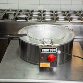 Tacho Fritador Elétrico 7 Litros TFSL Croydon. Ideal para lanchonetes, padarias, restaurantes, bares, food trucks e similares. Indicado para frituras em geral como pastéis, batatas, salgadinhos, acarajé e similares, com crocância e economia. Estrutura robusta com gabinete em aço inox, cuba em alumínio de chapa grossa e cesta de arame estanhado. Termostato regulável e lâmpada piloto indicadora. CAPACIDADE DE ÓLEO: 7L. PRODUÇÃO MÁXIMA: 24kg/h. POTÊNCIA: 3000W. CORRENTE: 13,6A. CONSUMO: 1,5kWh. PESO: 7,0kg. DIMENSÕES(CxAxL): 62x22x49cm. Tacho Fritador Elétrico 7 Litros TFSL Croydon é na Atau.