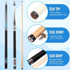 WFQFQE - ?Parâmetros de taco?O comprimento de cada taco de bilhar é de 147 cm e finalizado com uma ponta de couro de 13 mm, adota estrutura de taco dividido de 1/2, fácil de montar. Disponível em 540 ml e 590 ml. - Madeira de alta qualidade: feita de madeira de bordo de qualidade selecionada à mão, resistente e reta. Confiável e recomendado para uso comercial, pub ou residencial. - ?Linho irlandês?Imitação de linho e sensação agradável. Liso e equilibrado. Absorve rapidamente o suor da sua mão. Boa escolha para jogadores profissionais. - ?Design portátil?Projetado para facilitar o transporte e armazenamento, nossos bastões de bilhar de 2 peças podem ser desmontados e facilmente montados com um parafuso de 5/16 x 18 para sua conveniência. - ?Melhor presente?Presente Breat para amantes de bilhar --- O presente perfeito para todos que gostam de jogar sinuca e outros bilhar, enquanto isso adequado para bar/salão de bilhar/uso doméstico. Presente perfeito para um pai, marido ou amante de sinuca.