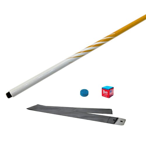 O Taco Inteiro Espiral Branco possui um acabamento refinado. Fabricado com madeira de Goiabão, esse taco tem tamanho de 1,45mt e peso entre 450g a 550g, proporcionando uma excelente sensação de equilíbrio e precisão.