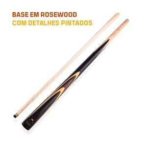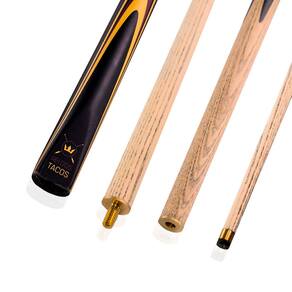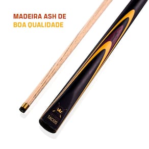 Especificações Técnicas Marca: Rei dos TacosModelo: Classic C2EDetalhe: Preto/AmareloRosca: 1/2, com encaixe em latãoMadeira ponteira: AshMadeira base: RosewoodComprimento total: 1,45 mComprimento da ponteira: 72,5 cmComprimento da base: 72,5 cmPeso: 480 g a 660 gVirola: Latão – 10,5 mmCabo: 28 mmSola: Couro (cowskin – dureza média)Entrada para extensor: Não possuiAcabamentos: Chanfro na base; pintura especial preta e amarela; ponteira lixada para deslize suaveItens inclusos: Taco, Giz, Sola extra e Protetor de base