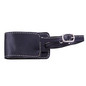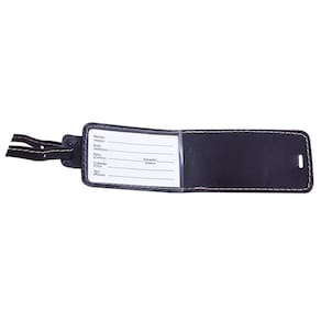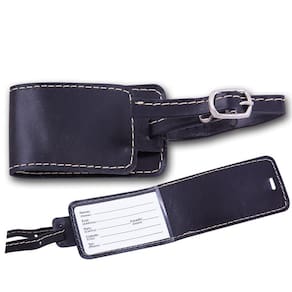 Identificador de Bagagem confeccionado em Couro Legítimo Preto contendo: -Fechamento por fivela -Etiqueta de Identificação em bilíngue (Português e Inglês)