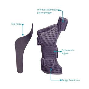 Tala punho e polegar comfort evolution chantal,desenvolvida para restringir os movimentos do punho e do polegar com eficácia e conforto.Com tecido respirável e forro interno macio, conta com tala anatômica que se adapta ao punho, proporcionando mais segurança e estabilidade ao longo do tratamento. Indicações: Limitar o movimento de flexão do punho e polegar, aliviar a dor e manter o posicionamento anatômico na prevenção e tratamento de doenças inflamatórias que afetam a região do punho e polegar. O tempo de utilização deverá ser orientado ao usuário/paciente por um da saúde. Características: Confeccionada em tecido respirável e forro interno para oferecer ao usuário sustentação e conforto. Possui duas talas, uma em plástico rígido posicionada na palma da mão que acompanha anatomia da região do punho e polegar, leve e resistente, que não resseca ou quebra com o passar do tempo, a outra tala é flexível, e fica posicionada no dorso da mão garantindo assim uma estabilização adequada. Desenvolvida com um sistema de ajuste que é composto por elástico e fecho de contato, permitindo um posicionamento correto. A ortese mantém os dedos livres ao mesmo tempo em que oferece sustentação para punho e polegar. Precauções: Não apertar demasiadamente. Como usar: 1. Medir a circunferência do punho com fita métrica para saber o tamanho correto. 2. Posicionar a tala acomodando na palma da mão e polegar. 3. Ajustar o elástico central no punho e aderir ao fecho de contato, de forma que a tala fique firme no punho para que a imobilização seja eficiente. Armazenagem e transporte: Manter em temperatura ambiente,em local fresco e seco. Produto lavável. Composição: 100% poliéster. Prazo de validade: Indeterminado. Marca: Não Informado Ean: 7898452524631