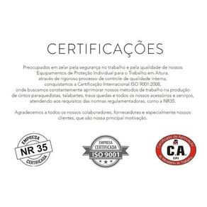 Possui 1 conector classe T confeccionado em aço com abertura de 16 3 mm e 1 mosquetão oval de trava de rosca com conector classe B confeccionado em aço com abertura de 19 3mm.
