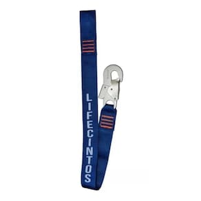 LIFE-6001 Fita de Ancoragem Simples de segurança, em I sem absorvedor de energia, confeccionado em fita na cor azul; composição: poliéster primária de 45mm de largura. Dispõe de 1 mosquetão dupla trava confeccionado em aço com abertura de 17 / 3mm, classe T em uma das extremidades e na outra um laço formado por uma costura robusta. Comprimento máximo de 0,90cm. Conector classe T Fita de poliéster 45mm NBR 15834/2020. Marca: Não Informado