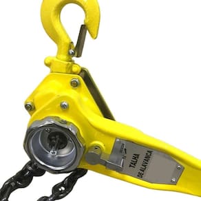 As correntes são de alta resistência e os ganchos possuem trava de segurança para evitar que a carga escorregue ou escape. As talhas manuais de alavanca são simples, versáteis e fáceis de utilizar. Elas são ideais para a elevação de objetos ou máquinas com segurança.