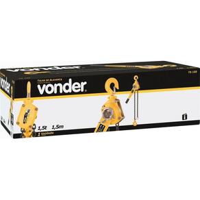 Conteúdo da embalagem1 Talha com alavancaAplicações e dicas de usoIndicada para puxar, arrastar e levantar cargasDestaques e diferenciaisPossui gancho com trava e alavanca com catraca reversível, facilitando o trabalho DETALHES TÉCNICOS Capacidade de carga da talha: 1,50 t Elevação máxima da talha: 1,5 m Largura da corpo da talha com alavanca: 103,0 mm Comprimento da ponta do cabo até o eixo central de acionamento da talha: 410,0 mm Profundidade total do corpo da talha com alavanca: 176,0 mm Medida do gancho até a ponta do eixo da catraca de acionamento da talha: 98,0 mm Medida da abertura do gancho inferior da talha com alavanca: 26,0 mm Prazo de : 6 meses Ean: 7893946175856