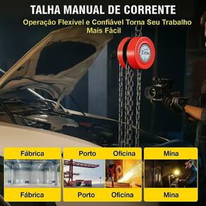 BJB equipamentos leia atentamente a descrio antes de comprar o produto - Produto de alta qualidade e durabilidade. - Produto com pelo fabricante. - Aconselha-se a leitura do manual antes do uso. - Imagem meramente ilustrativa. + SOBRE: - Ideal para uso em oficinas, construção civil, indústrias, matadouros, frigoríficos, lavouras, entre outros. - Projetado para suportar a elevação de cargas de até 2000kg - Projetado com de 5 metros de corrente. do vendedor: 90 dias Marca: Não Informado