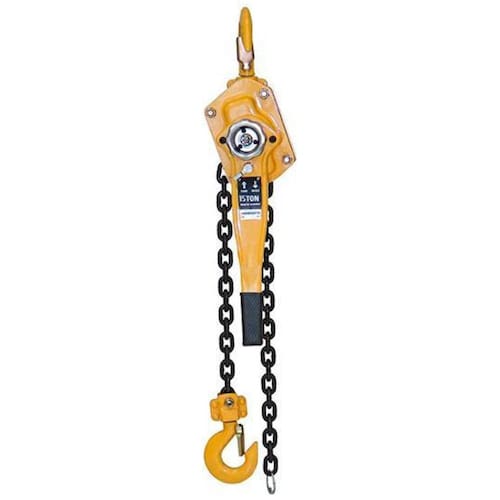 Talha Manual de Alavanca MTA 1.5ton 1500kg X 1,5m Menegotti - 40850011 Possui Estrutura de aço, com 2 ganchos em aço forjado com trava de segurança, que evita o desengate do material que está sendo corda, corrente, cinta, etc . em lugares estreitos, ar livre e lugares aéreos para o trabalho de puxar e esticar em qualquer ângulo. Eixo central em ferro fundido nodular, carenagem em chapa de aço. Polia de operação em ferro fundido, roldana guia para a corrente de carga e catraca e disco de freio para o giro sobe e reversão desce . Modelo: MTA 1.5 Capacidade de carga: 1500 kg Altura de elevação: 5 m Teste de carga: 2250 kg Força na alavanca: 21 kg No de fileiras de corrente: 1 Diâmetro da corrente: 8 mm Comprimento da alavanca: 410 mm Peso: 11 kg Imagens Meramente Ilustrativas Marca: Não Informado