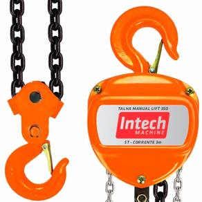Produto: Talha manual com capacidade de 5000 Kg e 3 metros de corrente - LIFT350 Marca: Intech Machine Descrição: A Talha manual com capacidade de 5000 Kg e 3 metros de corrente LIFT350 da Intech Machine é ideal para o içamento de cargas e objetos de até 5 toneladas, usada em oficinas, construções, indústrias, matadouros, frigoríficos, lavouras, entre outros. A Lift350 tem o corpo feito em aço, que traz resistência e durabilidade ao produto. Mesmo sendo robusta ela é leve e compacta pesando apenas 32 kg, que torna a Lift350 fácil de manusear e transportar. Sua corrente é de alta resistência, podendo elevar os objetos de até 5 toneladas por 3 metros de altura, mantendo a segurança e exigindo menor esforço ao usuário. Para facilitar ainda mais, a talha manual Lift350 acompanha um gancho para pendurar no local desejado. Resistente, compacta e segura, são muitas as razões para comprar a Talha Manual Lift350 da Intech Machine. Adquira já a suaEspecificações: Capacidade: 5 TMaterial: AçoElevação: 3 metrosDiâmetro da corrente: 8 mm.Itens Inclusos: 1 Corrente de 3 m.