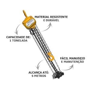 A talha suporta até 1 tonelada (1.000 kg) de carga.