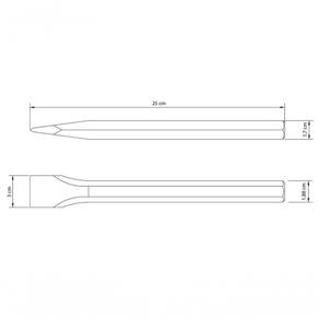 Modo de uso: Use óculos, luvas e outros equipamentos de proteção de acordo com a tarefa a ser executada. Utilize talhadeiras e ponteiros em superfícies ou componentes de dureza inferior a suas arestas de corte ou pontas. Descarte qualquer talhadeira ou ponteiro que apresente rachaduras, sinais de uso excessivo ou que tenham a face de impacto deformada. Golpeie as talhadeiras e ponteiros perpendicularmente às faces de impacto. Armazene em local limpo e seco.