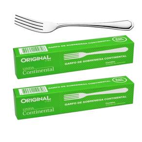 Talheres 24 Garfos de Sobremesa Aço Inox Resistente O Kit 24 Talheres Garfos de Sobremesa Continental Aço Inox é a escolha ideal para complementar sua mesa com praticidade e estilo. Feitos em aço inoxidável resistente, esses garfos são perfeitos para o uso diário e também para ocasiões especiais, oferecendo durabilidade e elegância em cada refeição. Com um design atemporal, os garfos garantem conforto ao manuseio e são fáceis de limpar, mantendo sua qualidade por muito mais tempo. São perfeitos para todos os tipos de refeições, desde as mais simples até os pratos mais elaborados. Especificações do Produto Modelo: Continental Peso: 836g Itens Inclusos: 2 Caixas com 12 Garfos UTILIZAÍ DISTRIBUIDORA A Utilizai foi criada para facilitar o dia a dia de seus clientes. Estamos há 27 anos no mercado e acreditamos que um mundo melhor começa pela nossa casa e queremos fazer parte de cada bom momento do seu dia a dia. Prezando pelo atendimento personalizado, humanizado, buscando excelência na prestação dos serviços com qualidade, entrega rápida, e preços competitivos e produtos com . Marca: Não Informado