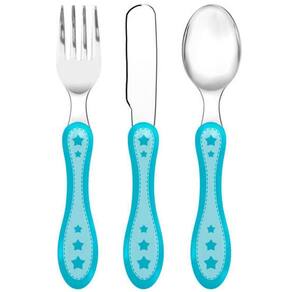 Com medidas de 14 x 2 x 1 cm, o Kit Talher 3 Peças Estrelinha Azul Buba é compacto e fácil de transportar. A cor azul traz um toque de diversão para a hora da refeição.