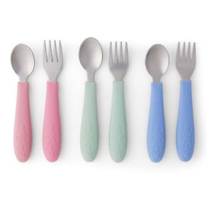 - Seguro para bebês/crianças: as colheres + garfos Elk and Friends apresentam pontas estreitas de aço inoxidável e uma alça de silicone antiderrapante ergonômica fácil de segurar, facilitando o manuseio das mãos pequenas