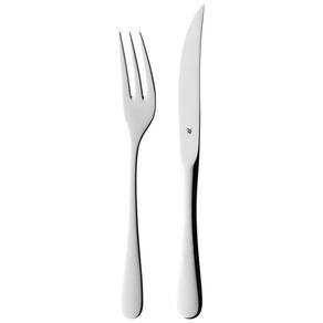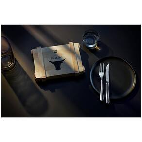 Não há nada pior do que tentar cortar a carne do prato muitas vezes antes de realmente cortá la, porque a faca não está afiada o suficiente. A WMF oferece o conjunto de talheres para bife perfeito. A faca afiada é ideal para carnes grelhadas, crocantes por fora e macias e suculentas por dentro. A faca para bife tem uma lâmina muito afiada feita de aço especial e é fornecida com um fio serrilhado. Os cabos sólidos e o equilíbrio geral das facas são ótimos para segurar e facilitar o corte de carne, enquanto o design simples e elegante combina bem com os padrões de talheres existentes. Conjunto de 6 embalados em caixa de presente, ótimo para presentear ou para guardar as facas quando não estiverem em uso. É claro que os talheres não são adequados apenas para bifes, mas também para serem s como talheres para grelhar no jardim.