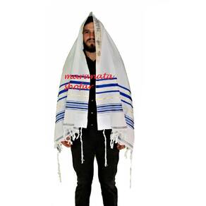Talit azul com dourado ortodoxo - importado de Israel medidas: 90 cm x 1,80 cm