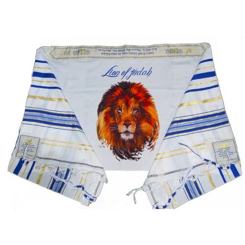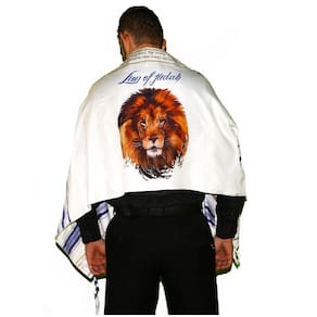 com desenho de leão de juda nas costas. O talit messiânico é uma colcha retangular com pincéis tsitzit e citações da bíblia localizadas em quatro cantos. No tempo de moisés, o talit era utilizado como roupa cotidiana, como uma capa ou capa. Tradicionalmente, lã ou linho era utilizado para a fabricação. De acordo com o mandamento: e ordene-lhes que os façam ao longo de suas gerações, nos cantos de suas vestes. . . Para que possam olhá-lo, lembrar-se de todos os mandamentos do senhor e cumpri-los números 15: 38-39 , pincéis especiais tsitsit foram costurados nas bordas, simbolizando 613 mandamentos. A brachá bênção contida na atarah do manto: