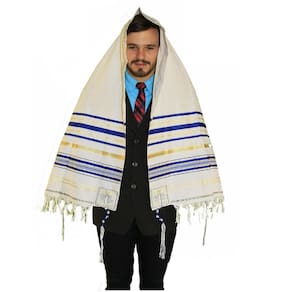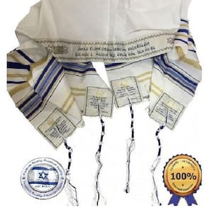 a oração na atarah do talit diz: bendito és tu senhor nosso deus rei do mundo/universo, que nos preencheu toda a torá com jesus o messias e cobriu a todoos nós com a sua justiça. Provérbios do antigo e do novo testamento bordados nos cantos carregam fé em sua onipotência e misericórdia. E eles desejavam dele para que eles apenas toquem a bainha da roupa dele e quantos tocaram foram feitos perfeitamente mateus 14:36 mas para você que teme meu nome, o nascerá o sol da justiça com cura nas asas malaquias 4: 2 Marca: Jerusalém Talit