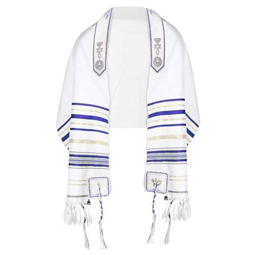 DESCRIÇÃO DO PRODUTO: Talit messiânico - de Israel medidas: 55 cm x 1,80 cm Tecido: acrilã - 100% poliéster. Cor: AZUL COM DOURADO Design de recurso principal: Cartas de Jesus soletradas nos 4 cantos Abençoe no Aatra parte superior : O Senhor te abençoe com ousadia para entrar no Santo dos Santos pelo Sangue de Yeshua HaMashiach 4 escrituras diferentes escritas em 4 cantos: Fp 2:9, Efésios 1:3, Romanos 8:38, João 14:6 Marca: Não Informado
