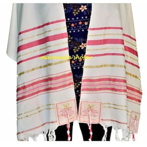 Graça e paz somos da maranata shofar vendemos shofar, talits, candelabros menorah, kipá, chaveiros, castiçais, torah, além de diversos itens importados de israel. Descrição do produto: Talit rosa - de israel medidas aproximadas: 55cm x 1,80 cm Tecido: acrilã - 100% poliéster. Cor: rosa e dourado Segue com bolsa de transporte Produto kasher seguindo os padrões da lei judaica; A brachá bênção contida na atarah do manto: A oração na atarah do talit diz: bendito és tu senhor nosso deus rei do mundo/universo, que nos preencheu toda a torá com jesus o messias e cobriu a todoos nós com a sua justiça. Provérbios do antigo e do novo testamento bordados nos cantos carregam fé em sua onipotência e misericórdia. E eles desejavam dele Para que eles apenas toquem a bainha da roupa dele e quantos tocaram foram feitos perfeitamente mateus 14:36 Mas para você que teme meu nome, o nascerá o sol da justiça com cura nas asas malaquias 4: 2 Ele foi ferido por nossas transgressões, ele foi ferido por nossas iniqidades. O castigo pela nossa paz estava sobre ele e pelas suas pisaduras somos curados. isaías 53: 5 Porque ele fez que aquele que não conhecia pecado fosse pecado por nós; para que possamos nos tornar a justiça de deus nele . 2 coríntios 5:21 Atualmente, para a fabricação de talit, os tecidos sintéticos ou mistos são mais utilizados, pois são mais duráveis e fáceis de usar. O kit inclui uma bolsa especial para guardar o talit, com um símbolo bordado do messianismo.