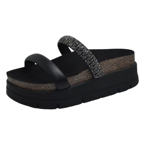 Solado leve, flexível e antiderrapante: garante segurança e estabilidade, com o charme do salto anabela de 7 cm.