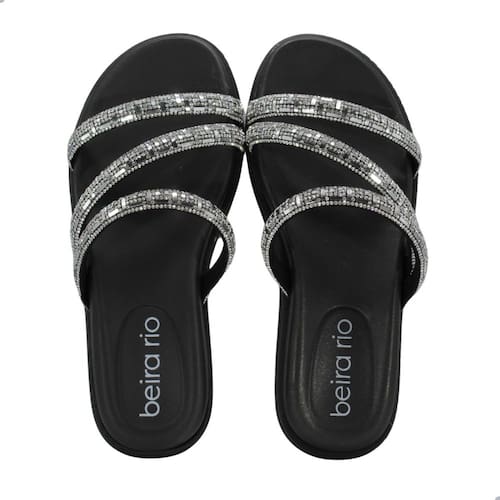 Tamanco Feminino Beira Rio Preto e Prata - Prata - 34