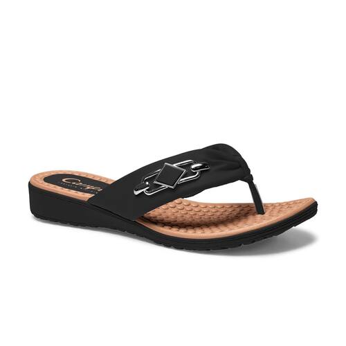 De visual minimalista, o Tamanco Campesí destaca seu cabedal, formado por duas tiras maleáveis e macias com o detalhe da peça metalizada com pedraria, que quebra sua monocromática com um toque de sofisticação. Além disso, conta com a palmilha com tecnologia EVAConfort, que é muito mais leve e macia. Sua sola é levemente anabela, com altura de 2,5 cm e é muito confortável, ideal para o dia a dia!